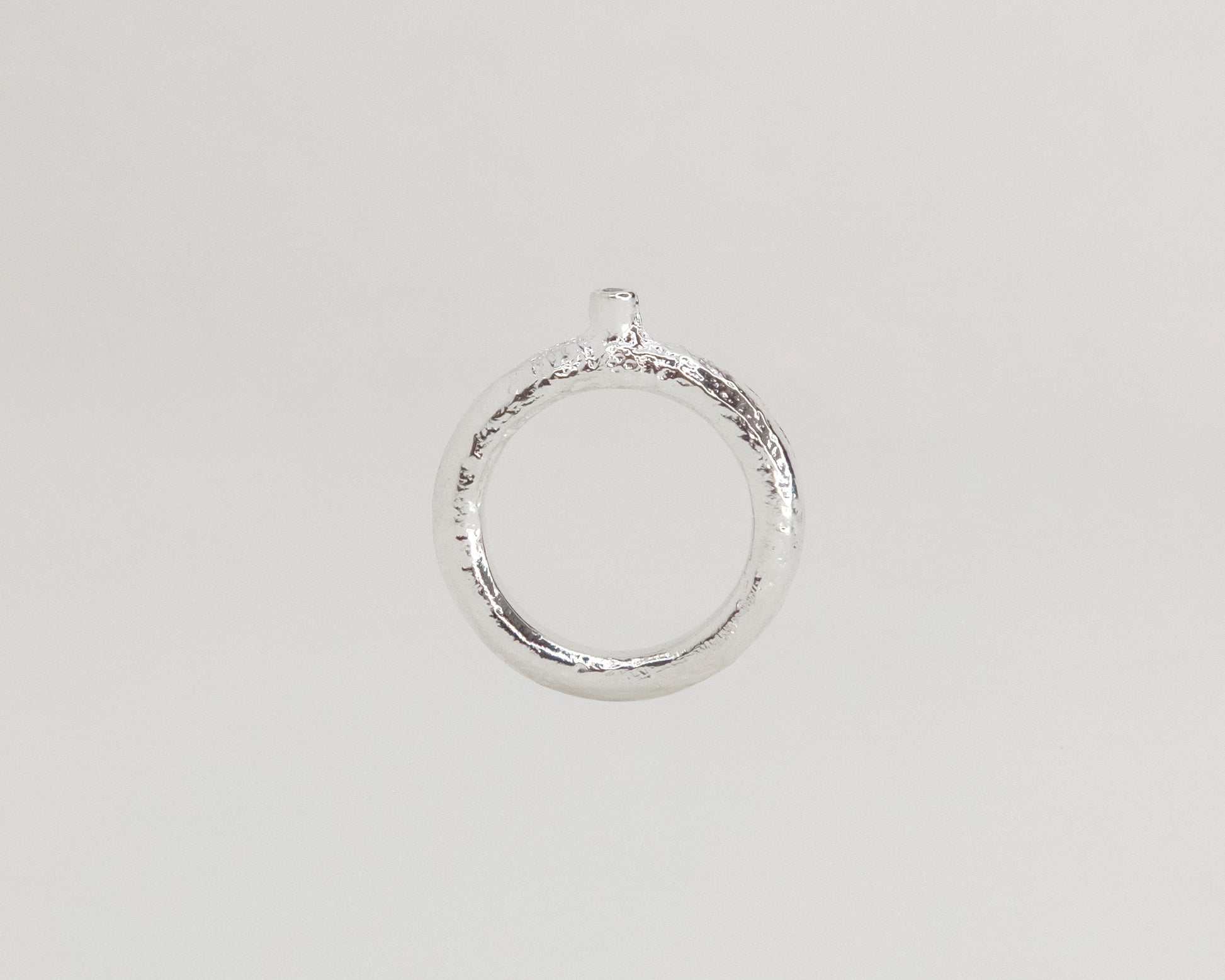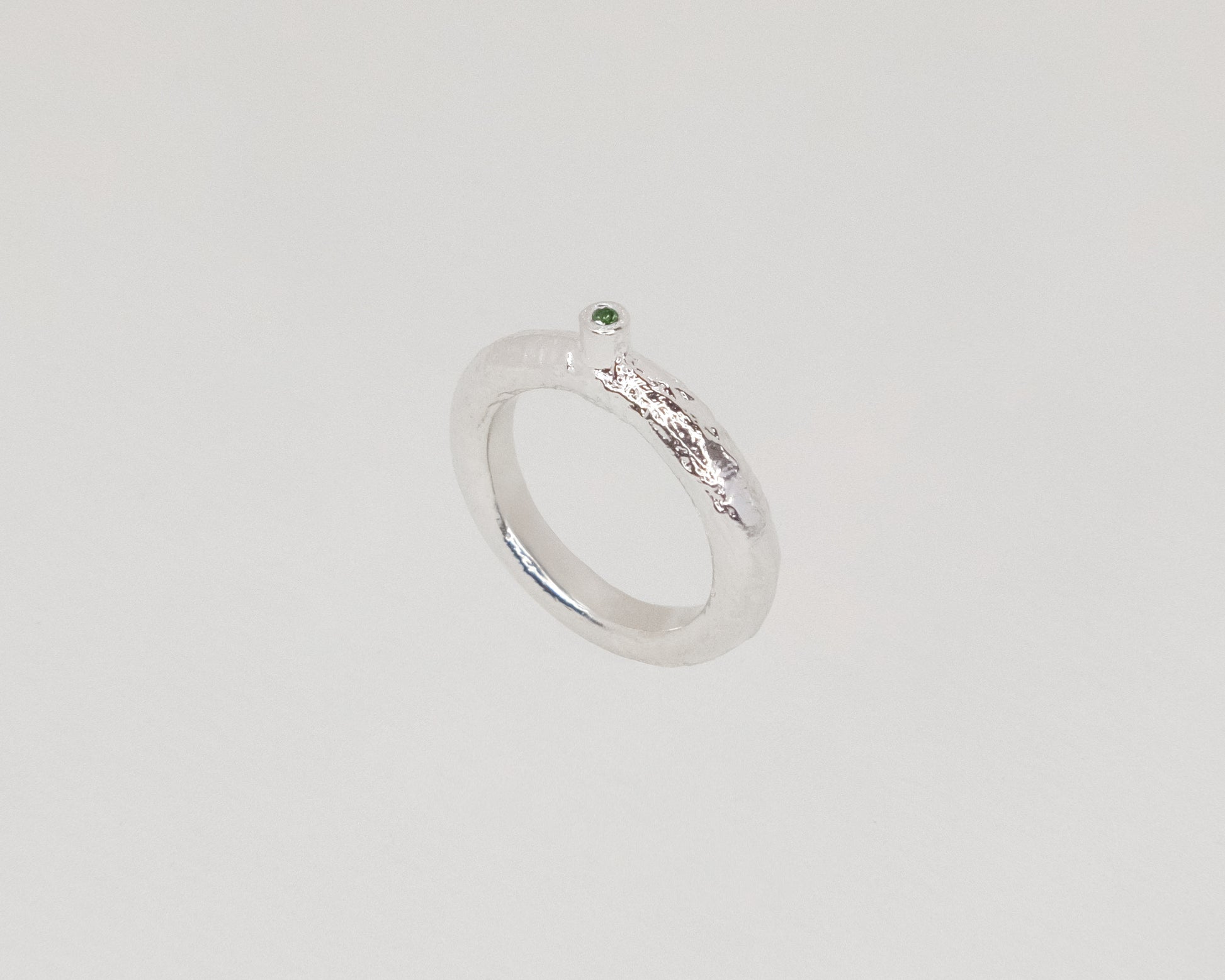 The Mono Ring is crafted from recycled sterling silver and features a green diamond.